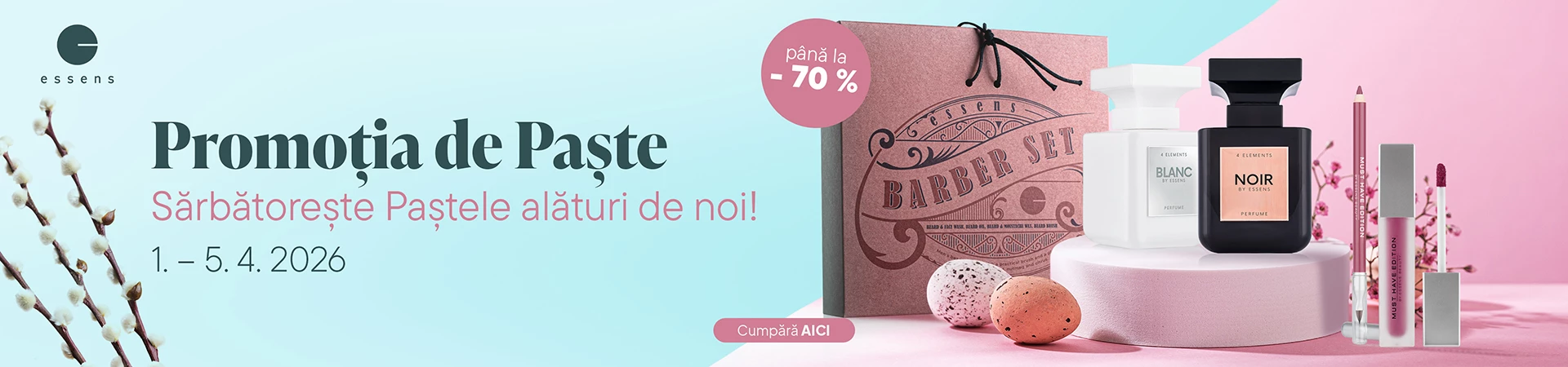 Citește mai departeFiecare dintre noi își dorește o piele care să arate sănătoasă, proaspătă și frumoasă în mod natural. Cu cosmeticele decorative ESSENS, aveți control total asupra aspectului dumneavoastră - de la un look subtil de zi cu zi până la un machiaj de seară care va captiva cei din jur. Datorită gamei largi de produse vă puteți lăsa personalitatea să strălucească, să vă jucați cu culorile și să experimentați în funcție de starea dvs. de spirit și de tendințele actuale....