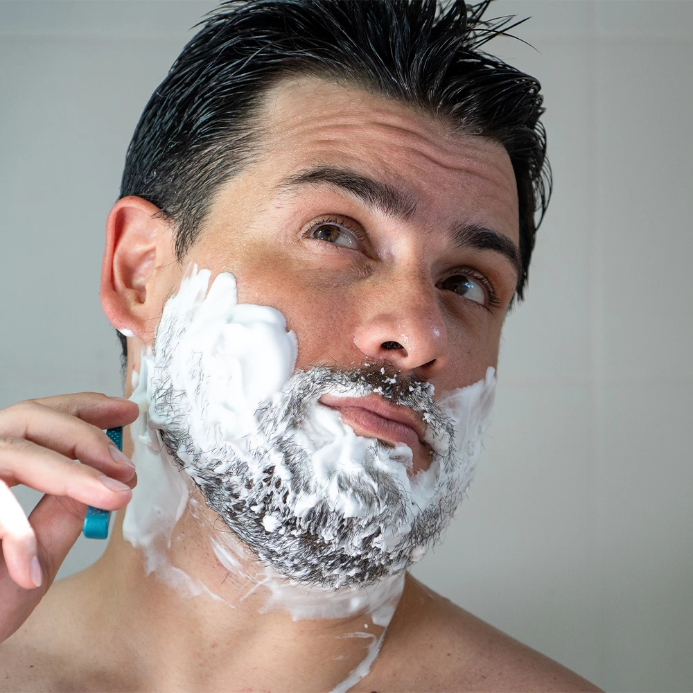 Oferă un bărbierit fin și confortabil, fără iritații. Datorită combinației de Aloe vera și vitamina E, sprijină regenerarea pielii și ajută la menținerea barierei sale naturale de protecție. Dimeticona creează o peliculă protectoare subțire care permite alunecarea mai ușoară a lamei, reducând riscul de mici tăieturi. Textura ușoară, aromă proaspătă și conținutul de mentol oferă un efect plăcut de răcorire, tonifiind pielea în timpul și după bărbierit.