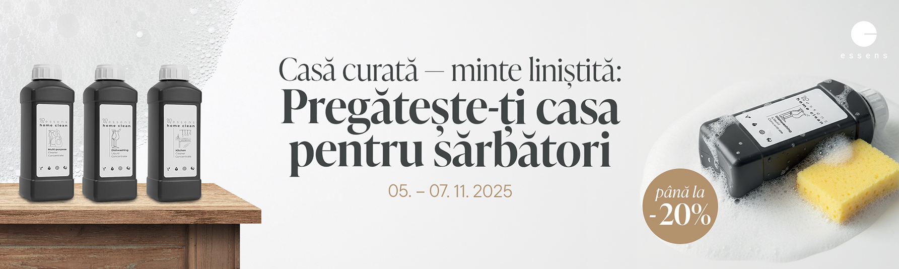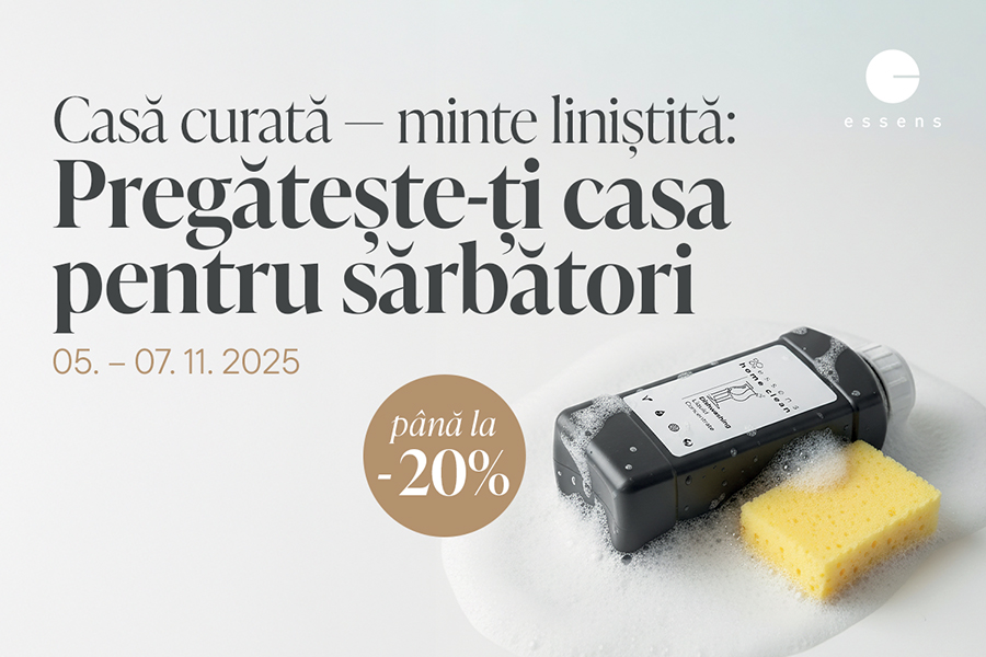 Achiziționează acum produsele tale preferate din gama ESSENS Home Clean cu reduceri de până la 20%!