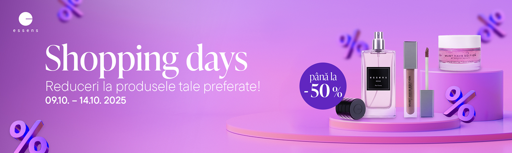 Între 9 și 14 octombrie vă așteaptă cumpărături avantajoase care vă vor bucura nu doar pe voi, ci și portofelul. Produsele de machiaj și parfumurile pot fi achiziționate cu reduceri de până la 50%!